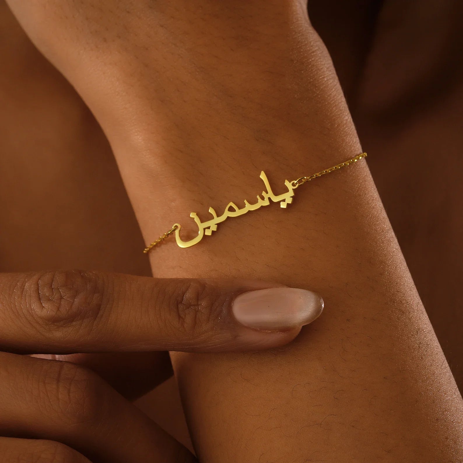 This Arabic Name Bracelet is the perfect minimalistic piece of jewelry for any woman. It can be personalized with your own name, making it a special and thoughtful gift. It's also a great way to showcase your Islamic heritage.