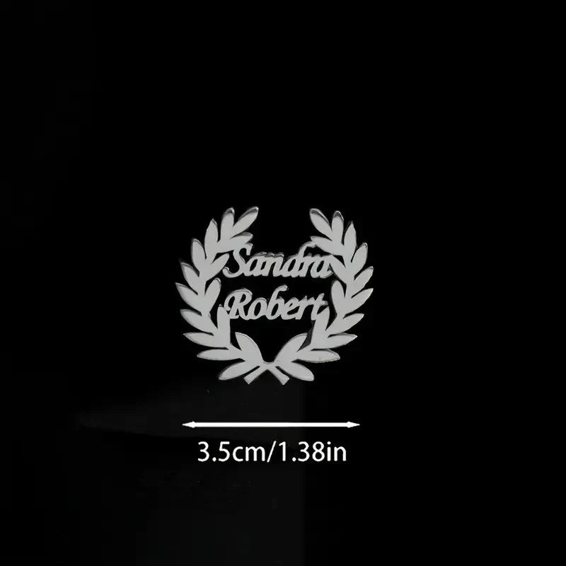 The Custom Dual Name Olive Branch Brooch is a beautifully designed accessory featuring two personalized names intertwined with delicate olive branches. Symbolizing peace, unity, and strength, this custom brooch makes a meaningful and unique gift, perfect for special occasions or as a cherished keepsake