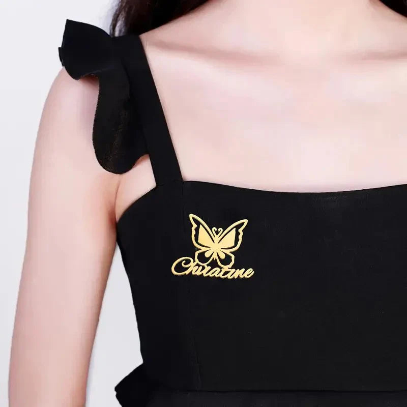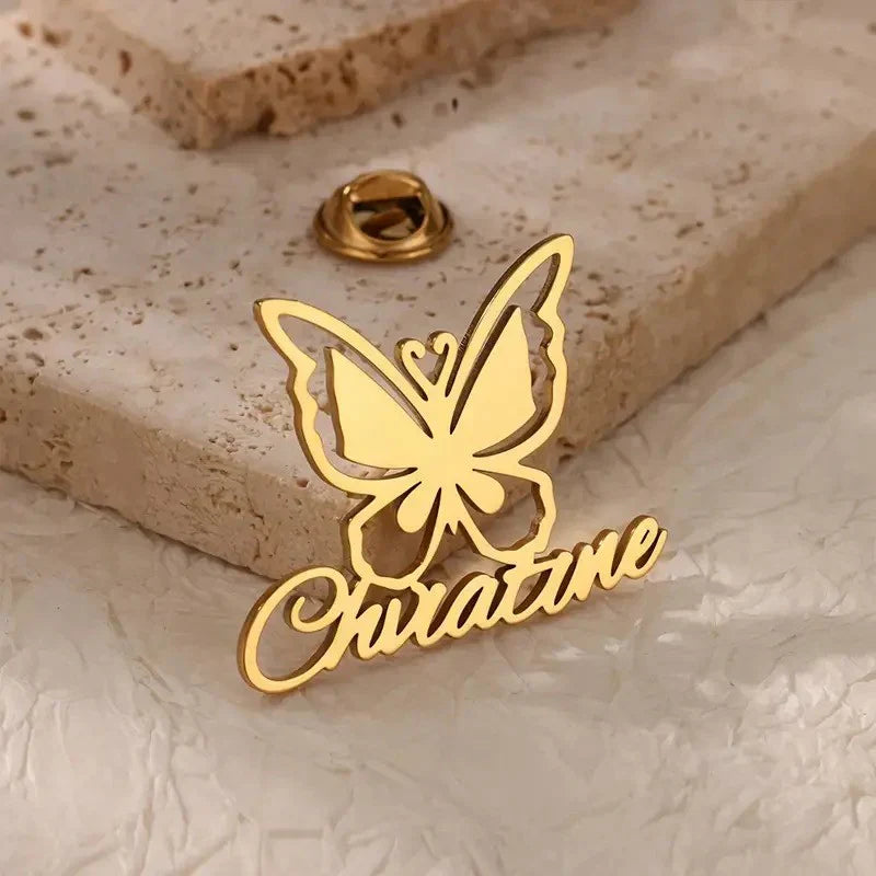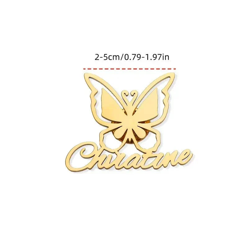 An elegant custom butterfly brooch featuring intricate design details, crafted with delicate precision. This brooch is adorned with sparkling gemstones, capturing the essence of nature's beauty. The English name "Graceful Wings" is elegantly inscribed, adding a personalized touch to this timeless accessory, perfect for adding a refined and sophisticated touch to any outfit.
