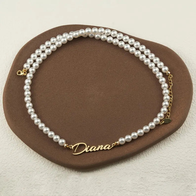 Elevate your jewelry collection with this sophisticated personalized pearl name necklace, expertly crafted to showcase your individuality. Each piece features lustrous pearls paired with a custom engraved nameplate, creating a timeless accessory that seamlessly transitions from everyday elegance to special occasions. The delicate design combines classic pearl sophistication with modern personalization, making it an ideal gift for milestone celebrations or a meaningful addition to your own collection. Versatile, refined, and distinctly yours.