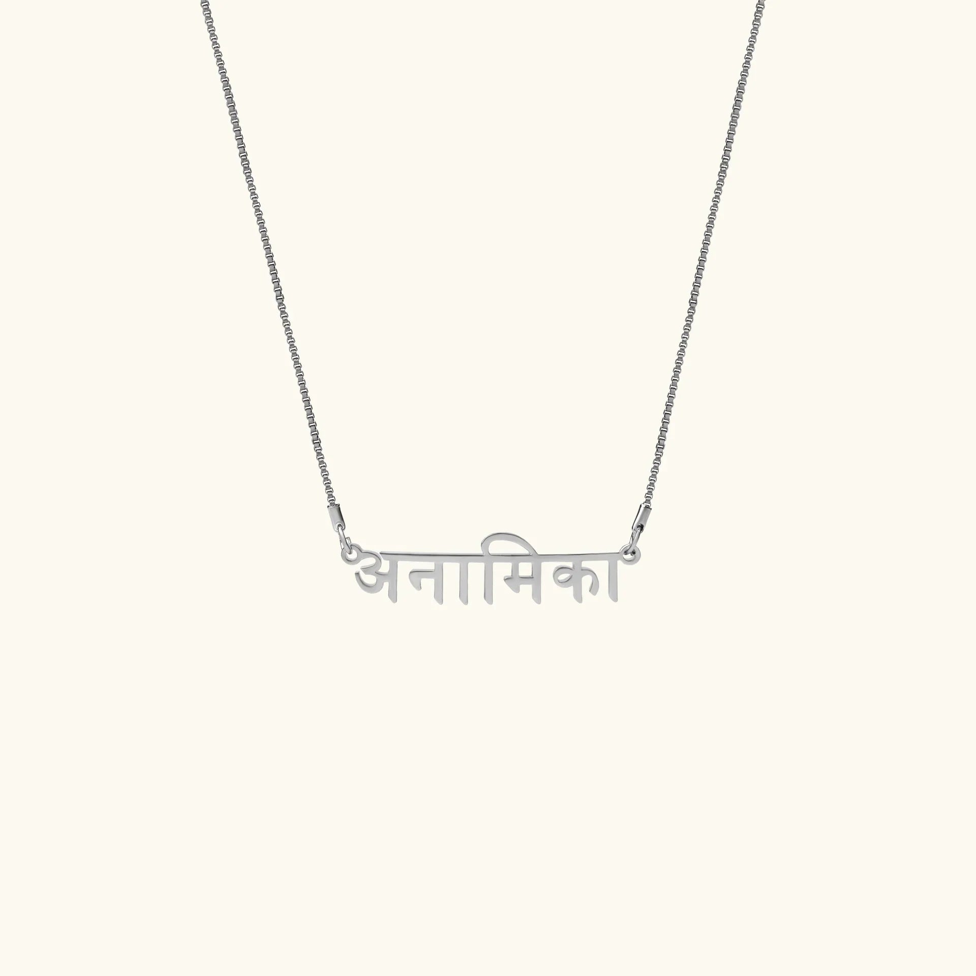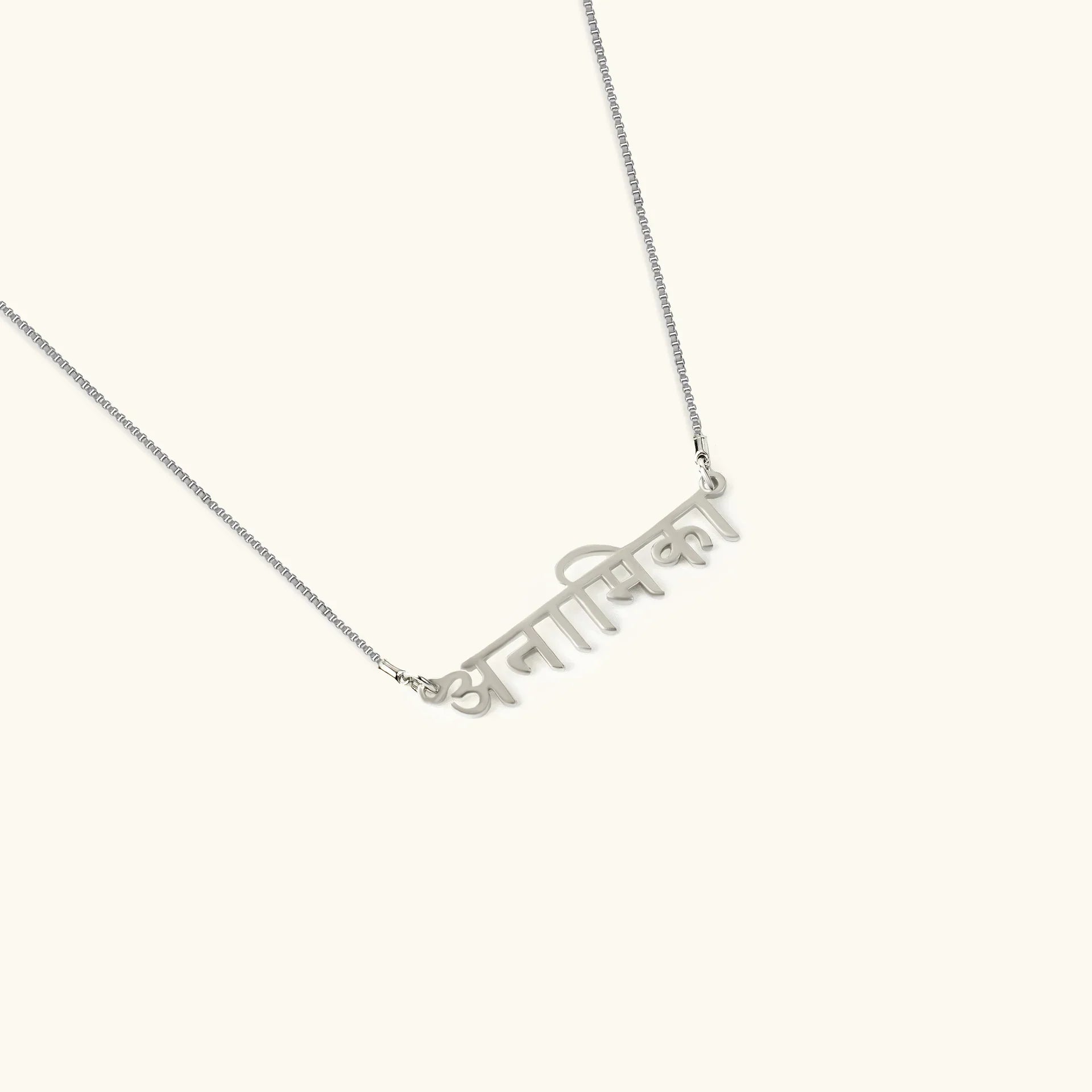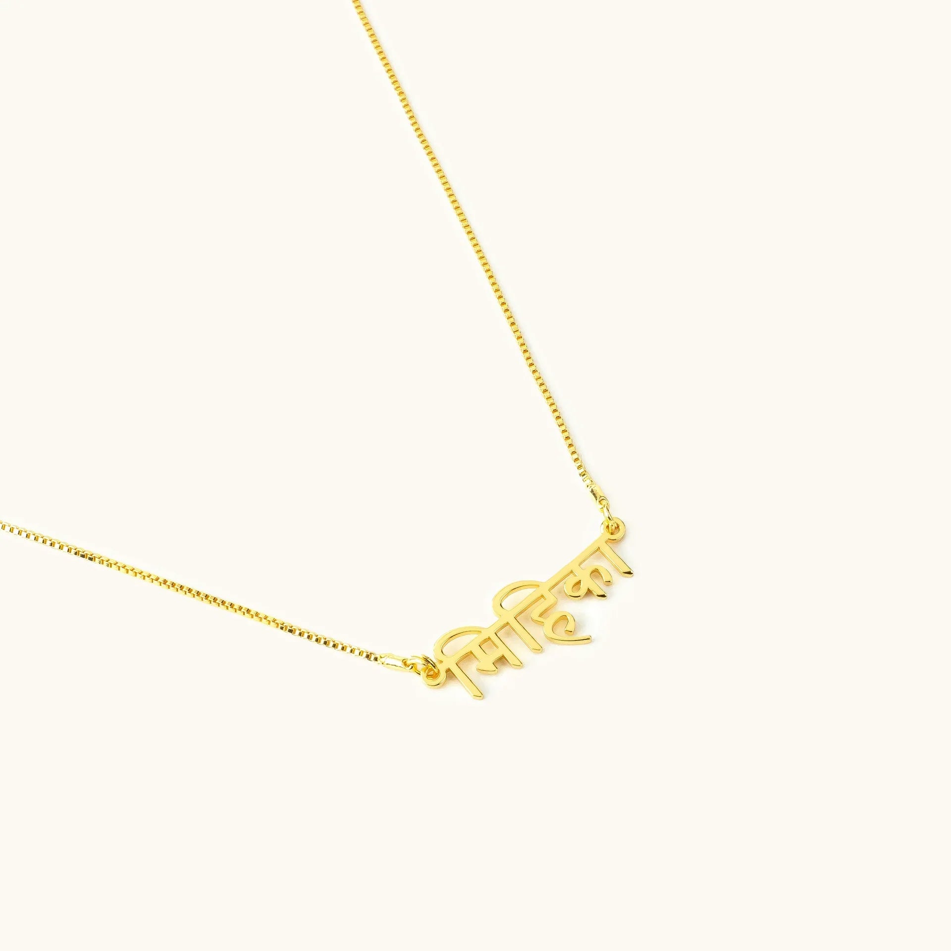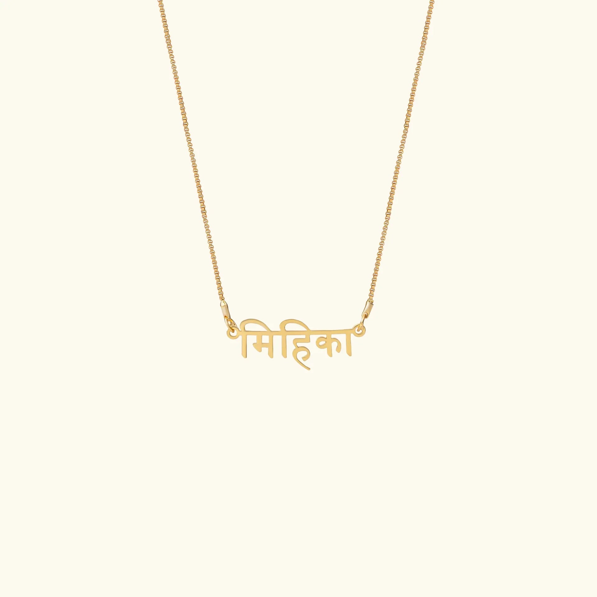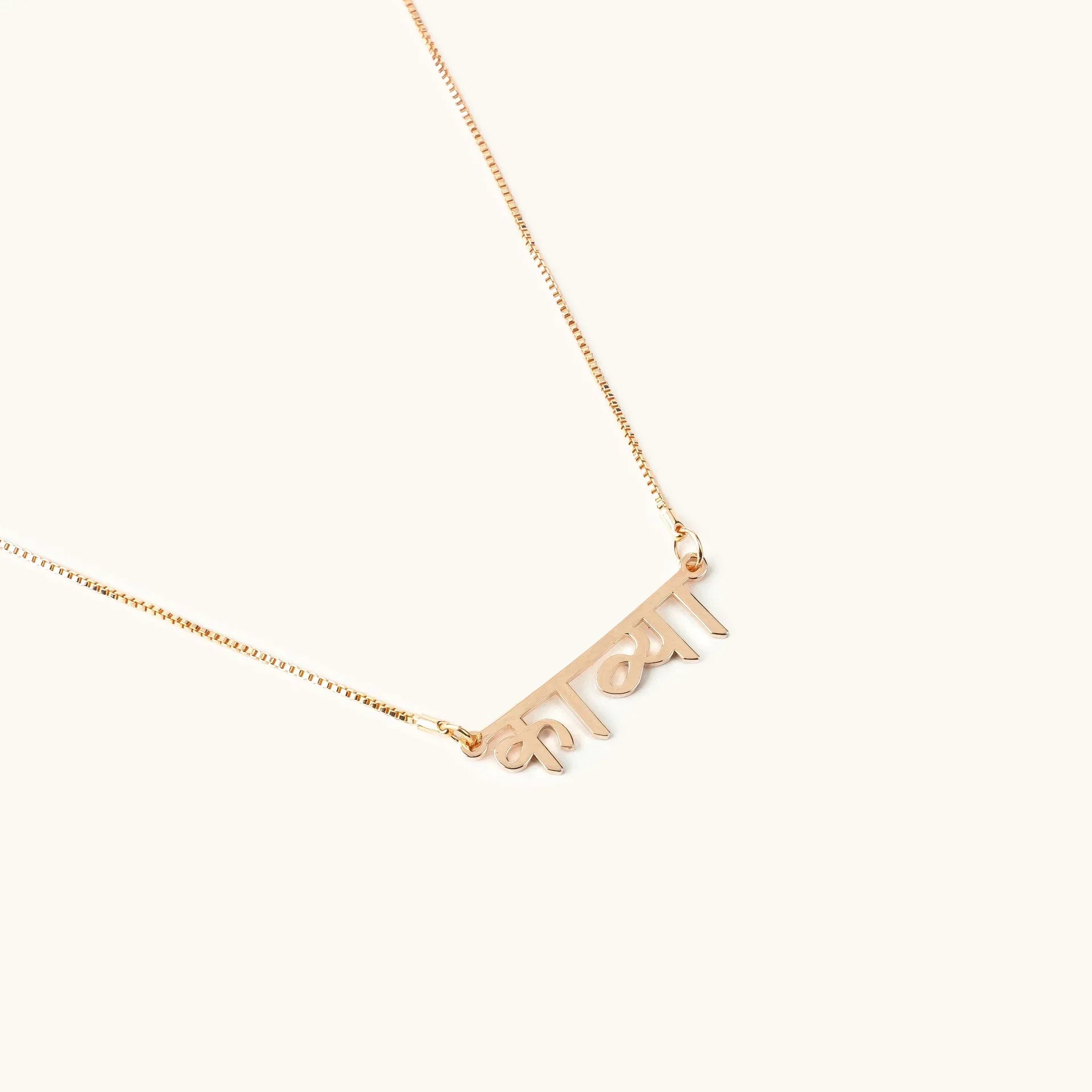 Celebrate your identity with this expertly crafted Hindi Name Necklace. Designed to showcase your name in elegant Hindi script, this necklace combines cultural significance with timeless style. Made with precision, it offers a meaningful accessory that complements any outfit while honoring your heritage. Perfect for daily wear or special occasions, it’s a unique piece that connects you to your roots with sophistication.