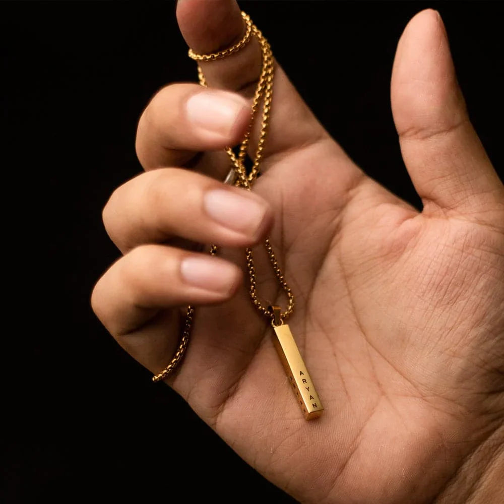 A Men's locket that is subtle and powerful - Made with Stainless Steel grade 316L, You are going to get bedazzled by the looks of the 22 carat gold plated locket. Precise polishing and perfect engraving ensures it is made to last. This personalised cuboid shaped locket features your name on it on all 4 sides. The locket comes with a standard 12 Carat Gold Plated Boa pattern chain with 55 cm length.